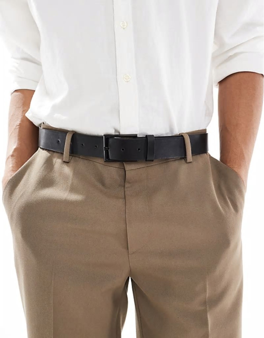 smart faux leather belt with matte black buckle in black